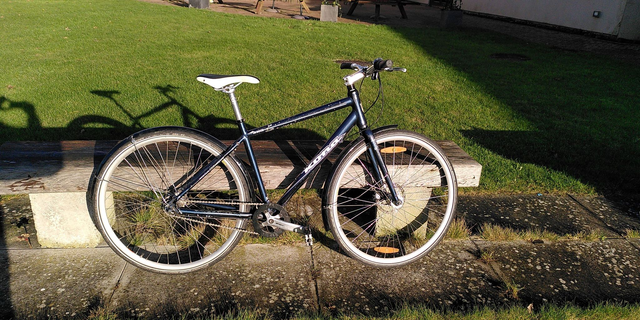 700c wheels, 1 x7 hub gearing, Front disc brake, roller rear, mudguards