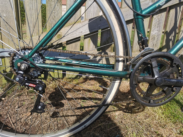 700c wheels, 2 x 6 Sunrace, Cantilever rim brakes, mudguards, comfy saddle